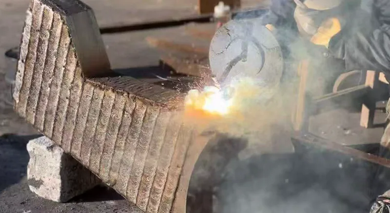 (2) Under reparation: Vi udfører i øjeblikket kromcarbid-overlejringssvejsning.