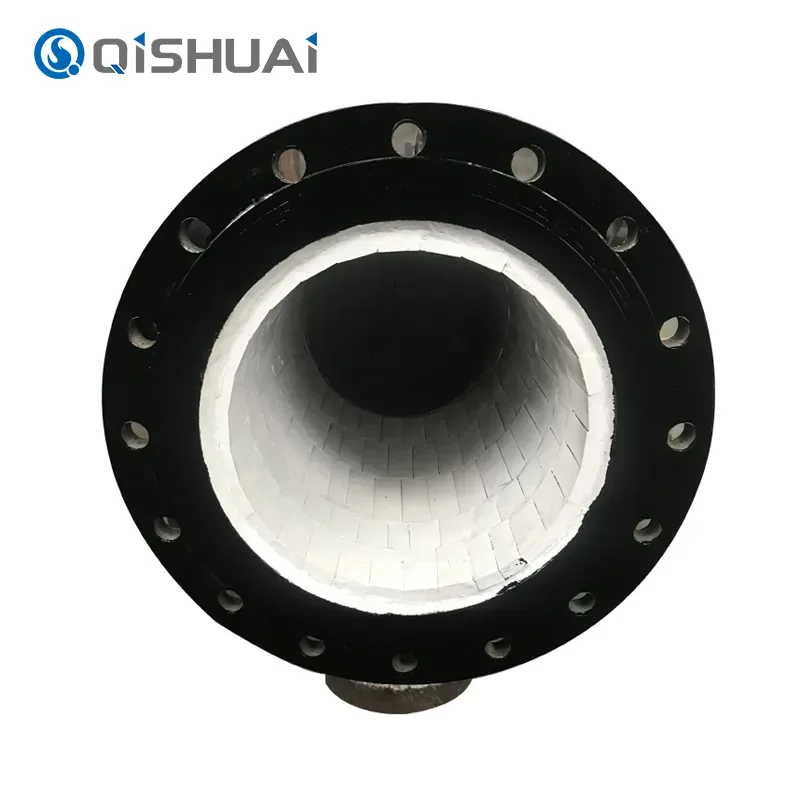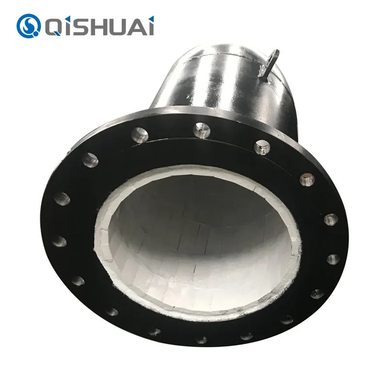 Shandong Qishuai Wear-Resistant Equipment Co., Ltd. producerer keramiske forede albuer, som kombinerer den ultra-høje hårdhed, fremragende slidstyrke og god korrosionsbestandighed af keramiske materialer med den høje styrke og sejhed af metalliske materialer. Dette nye design af kompositstrukturen gør, at vores produkt kan fungere stabilt under forskellige former for komplekse og barske arbejdsforhold. Det kan effektivt løse problemerne med kort levetid og hyppig vedligeholdelse af albuer, der i vid udstrækning anvendes i miljøer med højt slid, stærk korrosion og høj temperatur osv..