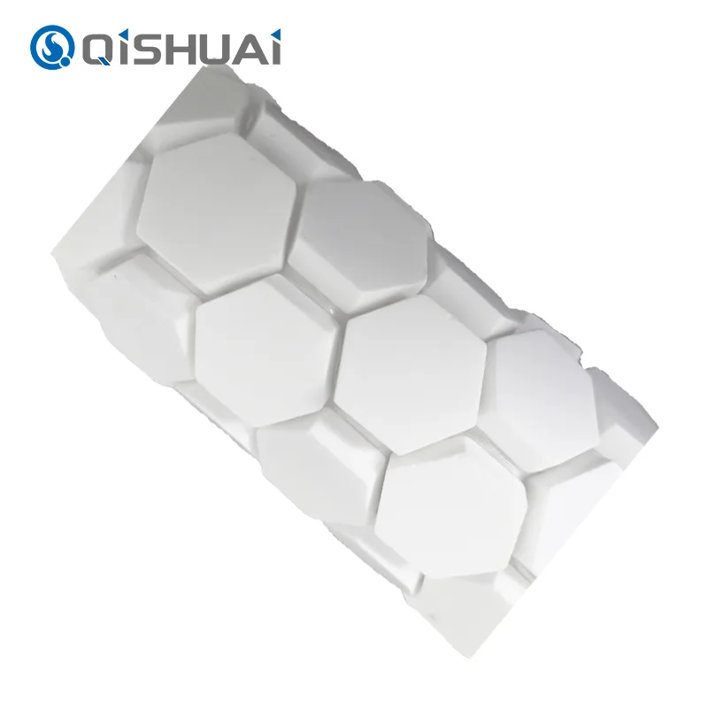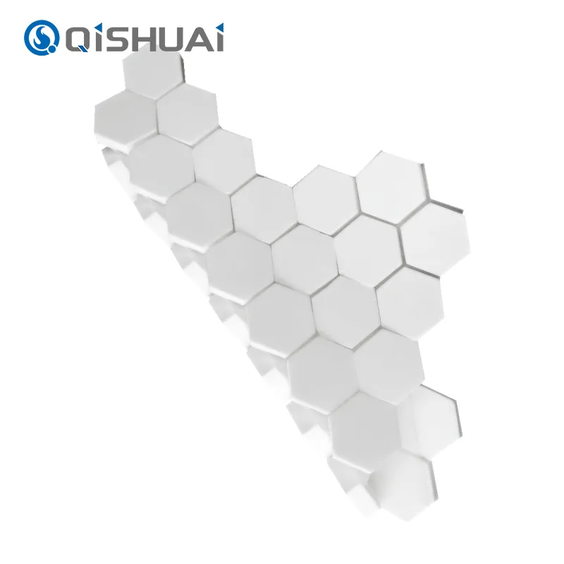 Shandong Qishuai Wear-Resistant Equipment Co., Ltd.'s højkvalitets Hex Alumina Ceramic Mosaic, som illustreret, har et karakteristisk sekskantet design, der adskiller dem fra almindelige firkantede eller cirkulære fliser. Hver sekskantet alumina keramisk mosaikflise kan prale af glatte, flydende kanter med udsøgte detaljer, der er klart synlige.