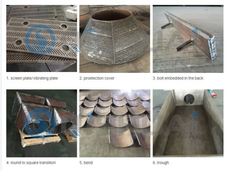 - Enkeltvals-knuser-hovedaksler enkeltvals-knuseraksler, pladereparations-overlay-svejsning, slagger, fordelingsskiver, vibrerende indføringsforinger, vibrerende sigteforinger, malmtragte, tragtblade og slidbestandige komponenter til transport af vandslagge. De modstår effektivt slid fra højtemperaturslagger, malm og andre materialer, hvilket reducerer nedetiden i stålfremstillingsudstyr og sikrer stabile produktionsoperationer.